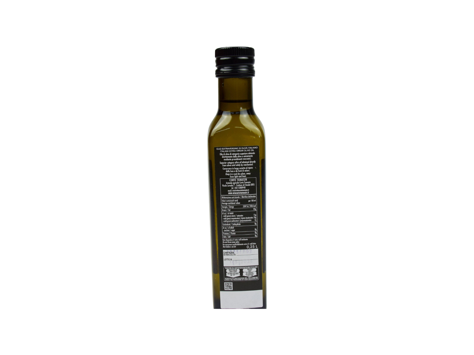 Das Corte Tomasin Olivenöl 0,25l stammt aus der familiengeführten Ölmühle Corte Tomasin in Castions di Strada, Friaul-Julisch Venetien. Dieses extra native Olivenöl wird aus sorgfältig ausgewählten Olivensorten wie Bianchera, Coratina, Leccio del Corno und Picholine hergestellt. Die schonende Verarbeitung im kontinuierlichen Verfahren bei kontrollierter Temperatur bewahrt die natürlichen Aromen und Nährstoffe des Öls.