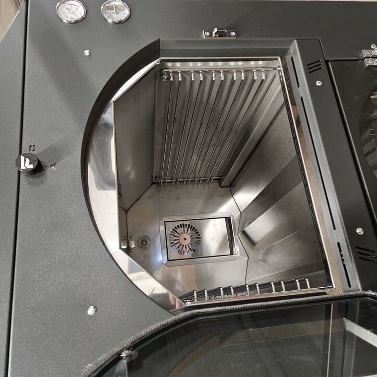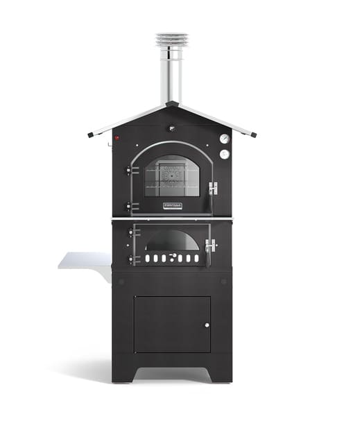 Der Fontana Gusto Holzbackofen ist ein echter Klassiker, der dank eines umfassenden Restylings in neuem Glanz erstrahlt. Er verbindet die bewährte Qualität und Funktionalität von Fontana mit modernen technologischen Neuerungen, ohne die traditionellen Merkmale zu vergessen. Die Außenstruktur besteht aus rostfreiem, lackiertem Stahl, während die Türen aus widerstandsfähigem Gusseisen mit Anti-Brandschutz-Griffen gefertigt sind, was Langlebigkeit und Sicherheit garantiert.
