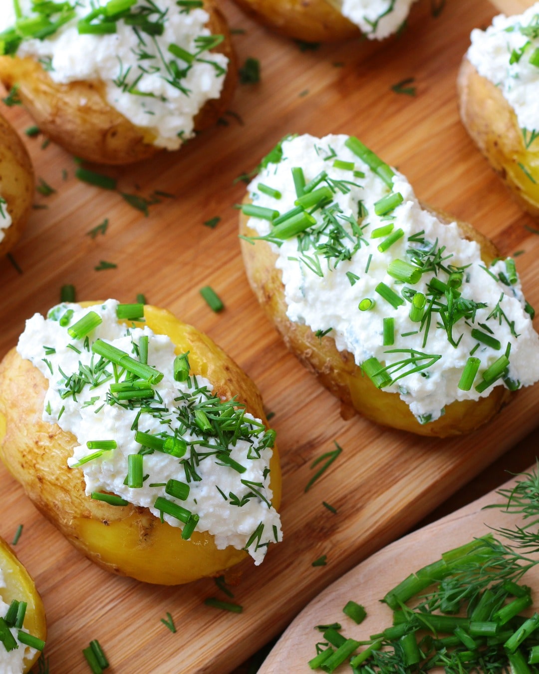 - Zum Servieren: Butter, Kräuterquark oder Sour Cream, frische Kräuter (z. B. Schnittlauch, Petersilie)