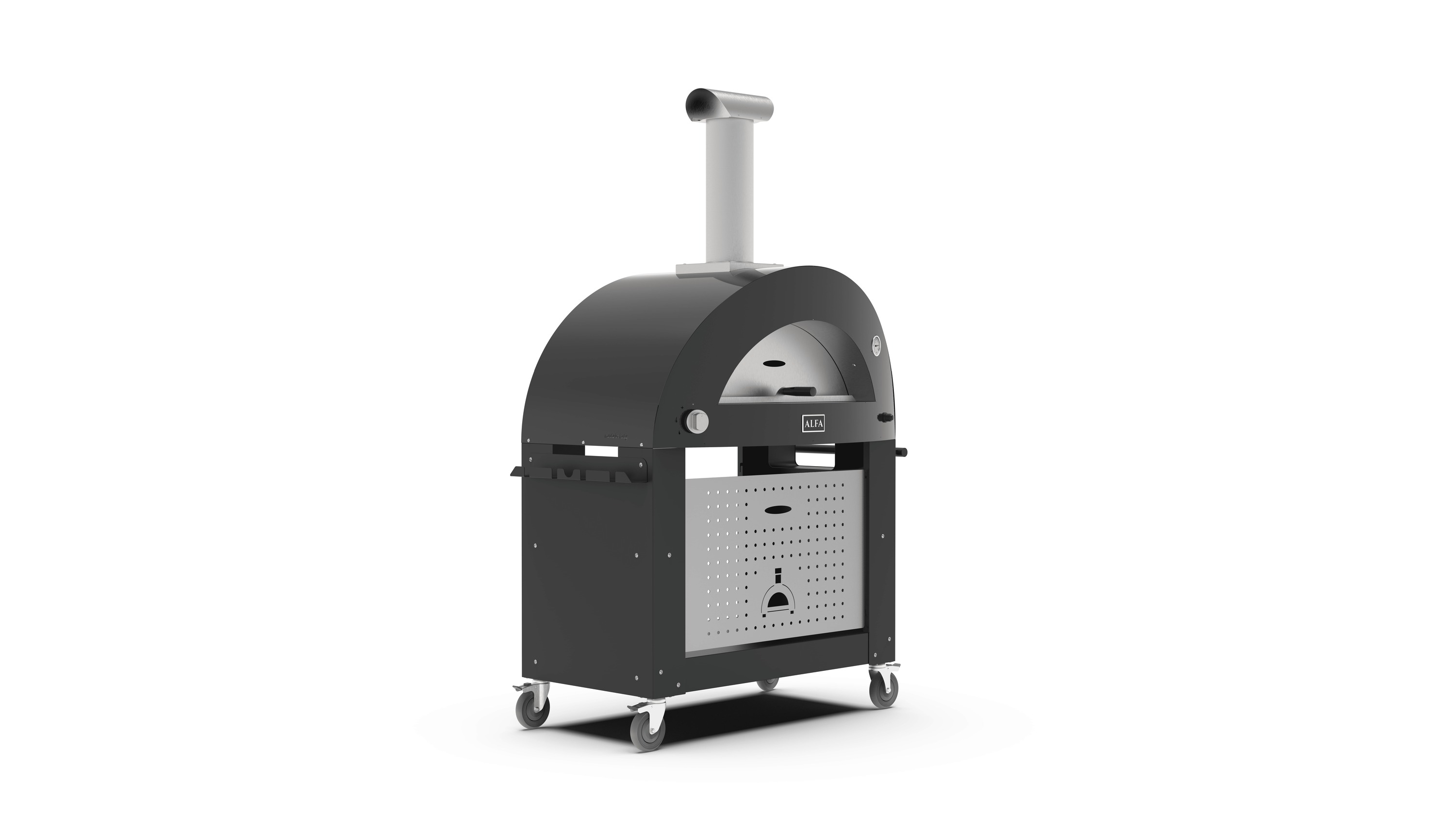 Erfahren Sie, wie das speziell konzipierte Untergestell die praktische Nutzung Ihres 3 Pizze-Backofens von Alfa verbessert. Mit seinen professionellen Rädern und der stabilen Ablagefläche bietet es nicht nur maximale Mobilität, sondern auch eine bequeme Aufbewahrungsmöglichkeit für Ihre Gasflasche oder Ihr Brennholz, damit Sie sich voll und ganz auf das Kochen konzentrieren können.